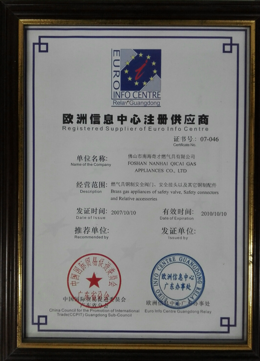 主頁 > 企業榮譽 > 企業榮譽 > 歐洲信息中心注冊供應商證書